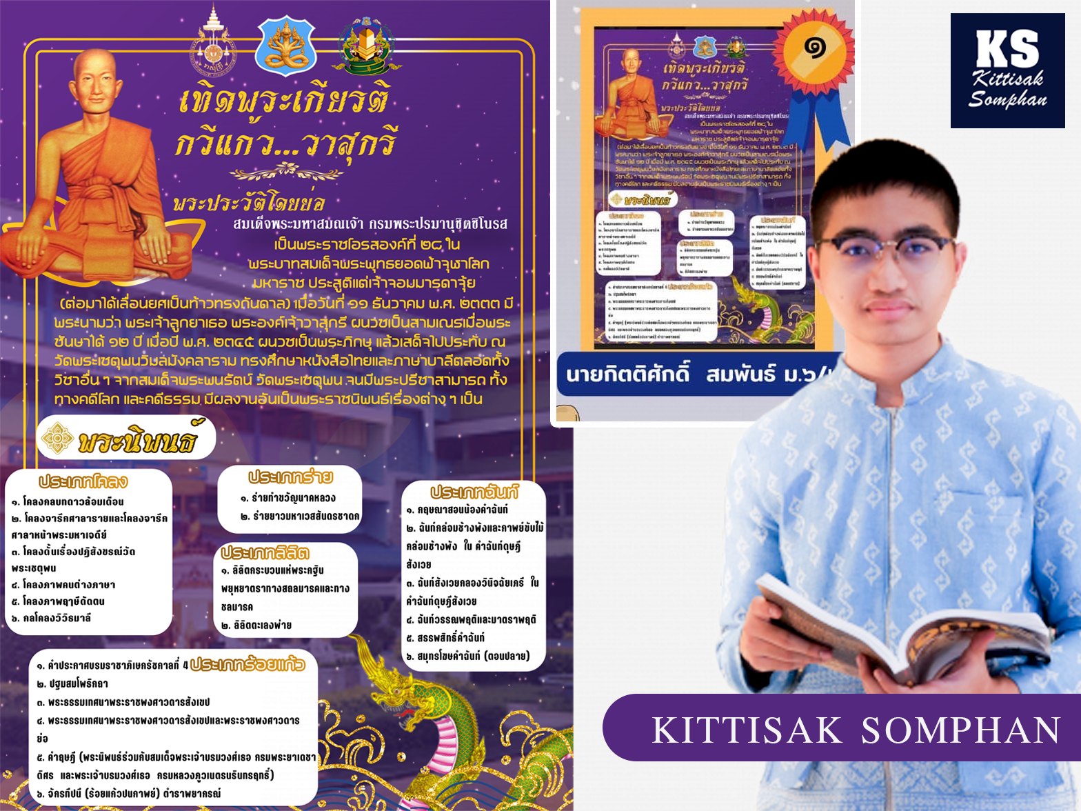 ได้รับรางวัลรองชนะเลิศอันดับ 1 การอ่านทำนองเสนาะ ระดับมัธยมศึกษาตอนต้น